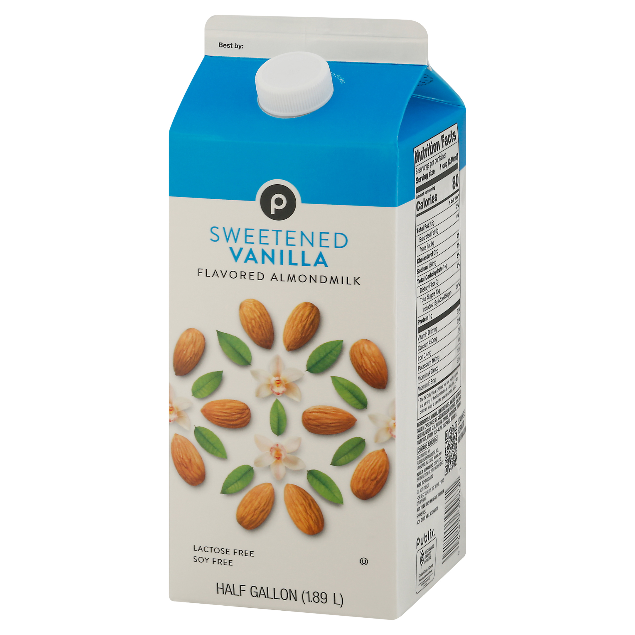 Publix Sweetened Vanilla Flavored Almondmilk 0.5 gal