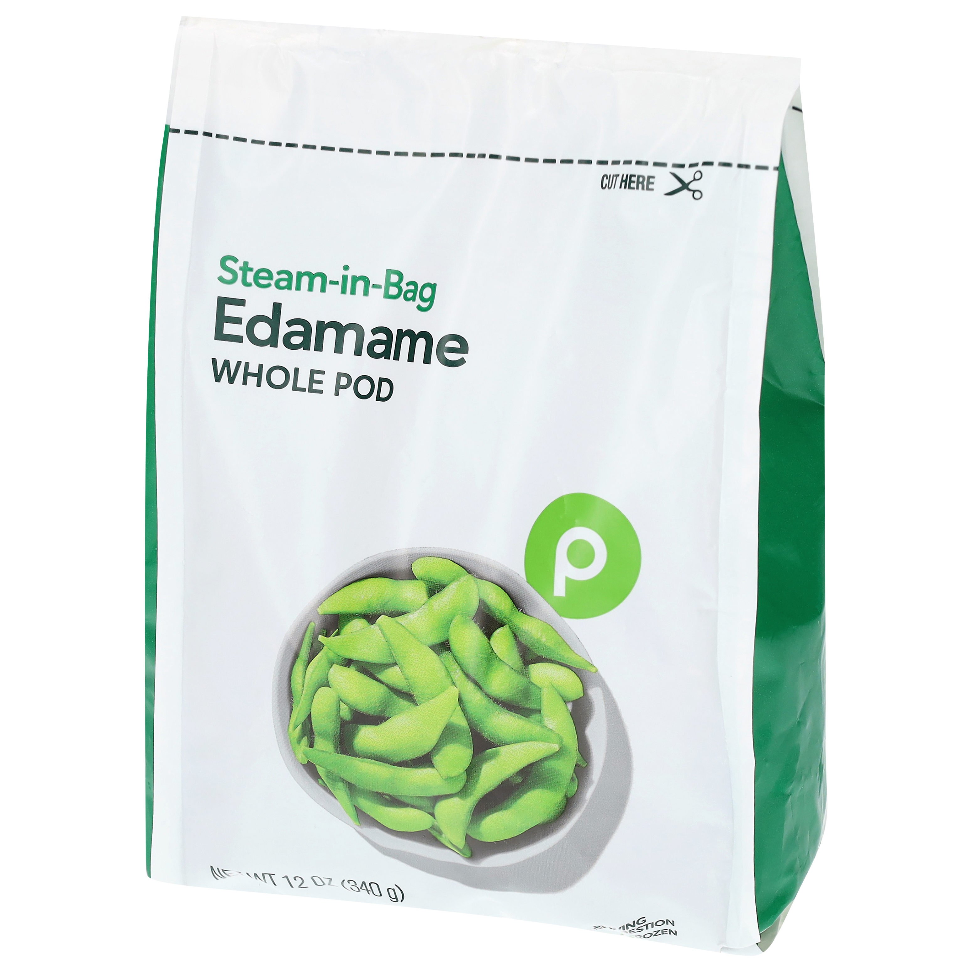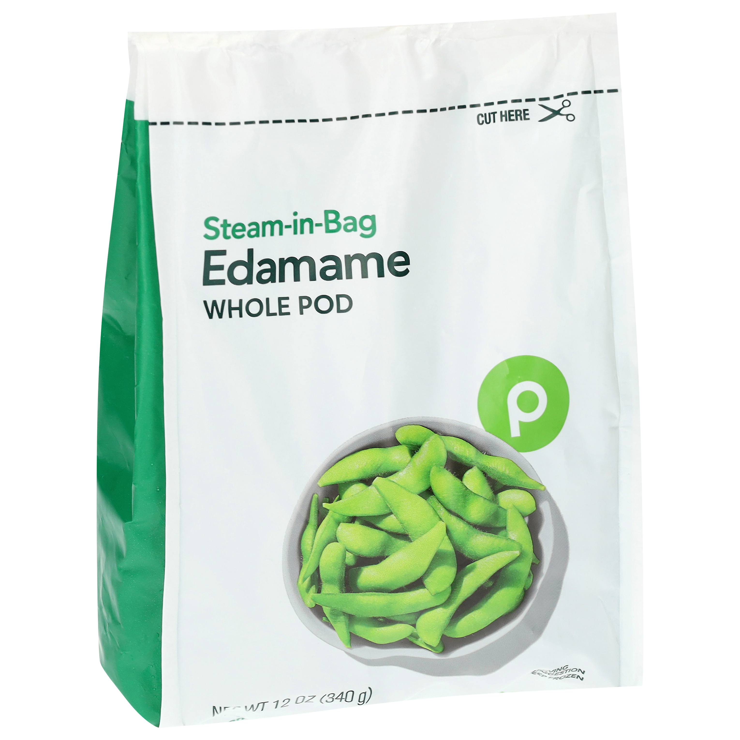 Microwave: Gently massage bag to separate edamame. Do not open bag. 1. Place unopened bag, front panel facing down, in the microwave. Microwave on high 5-6 1/2 minutes. (Bag will expand during cooking process.) 2. Let stand 1-2 minutes in microwave. Remove bag carefully; cut open and transfer edamame to serving dish. Microwaves vary; adjust time as needed.